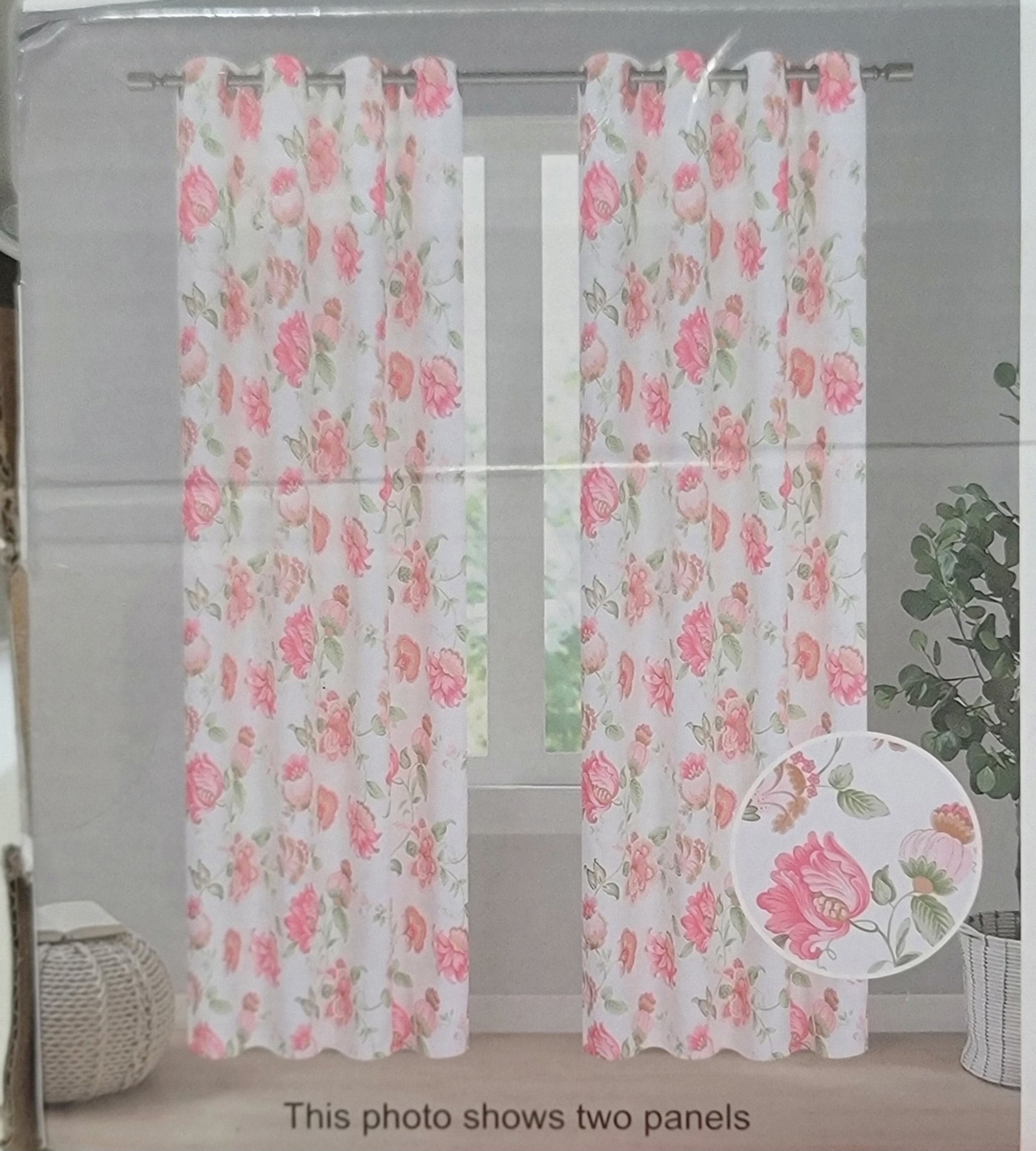 2 Panel Pink Window Curtain Panels, Grommet Top Insulated Drapes for Living Room, floral pink, 2 Panels, 52W x 108L. SET OF 2 PANELS: Sold per pair, panel measures: 52 inch wide by 108 inch long| Set measures: 104 inch wide by 108 inch long. Each panel has 8 matching grommets (rim of grommet is 2.4", while inner is 1.6"), can be hung from a basic or decorative curtain rod. Ultra soft, smooth, silky, velvet hand feeling, made by OEKO-TEX Standard 100 factory, these magic blackout curtain panels can block out 99% sun light and prevent 100% UV ray, high technology ensure they are vinyl free and ECO friendly, breathable and airy to your window and rooms.